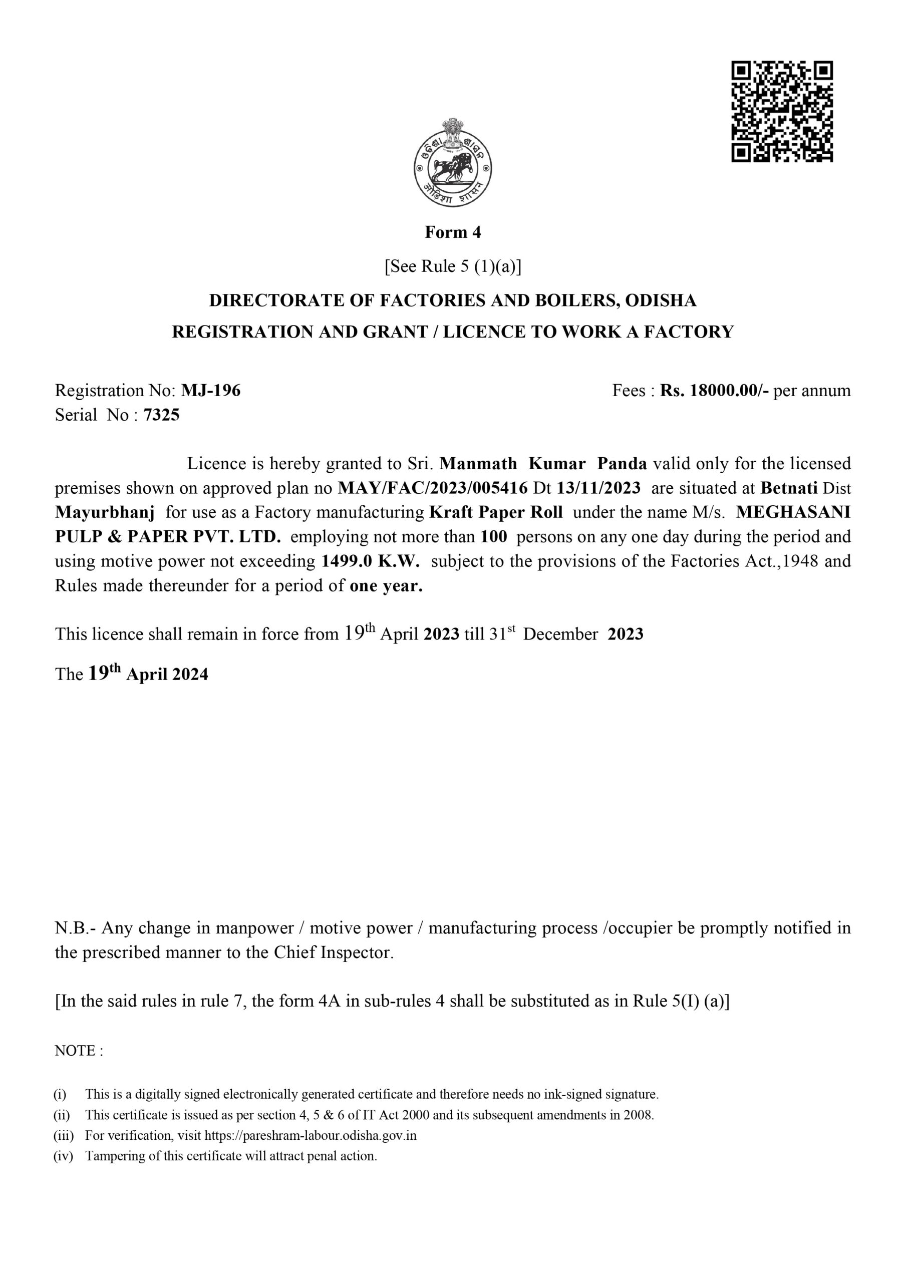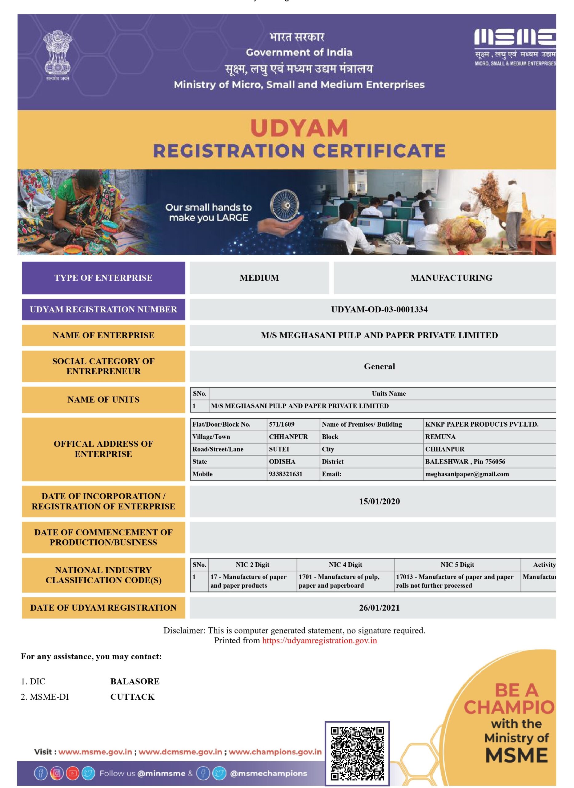 Meghasani, a leading name in India’s kraft paper production, has championed eco-conscious practices since 2020. With a 120-tonne daily capacity, our Balasore-based facility produces premium kraft paper from agro and wood materials, mitigating environmental degradation. Led by Director Manmath Panda, we’re dedicated to quality, sustainability, and a greener future for all.